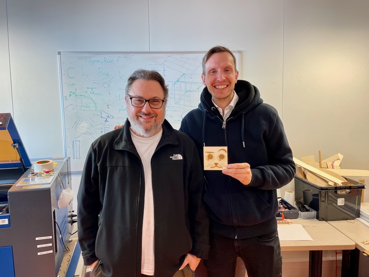 _On notera la présence du mathematicien et youtuber Nathan Uyttendaele, des chaines « Les statistiques expliquées à mon chat » et « Chat sceptique » pour qui - sous la pression populaire ;-) - nous avons gravé le logo sur notre découpe laser.
