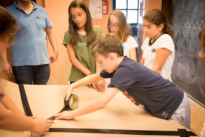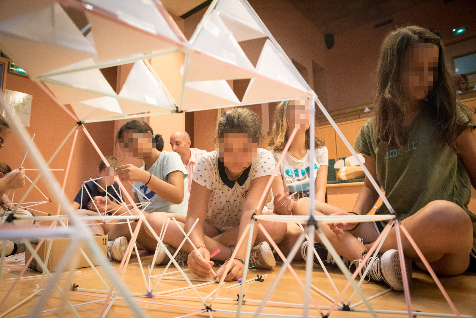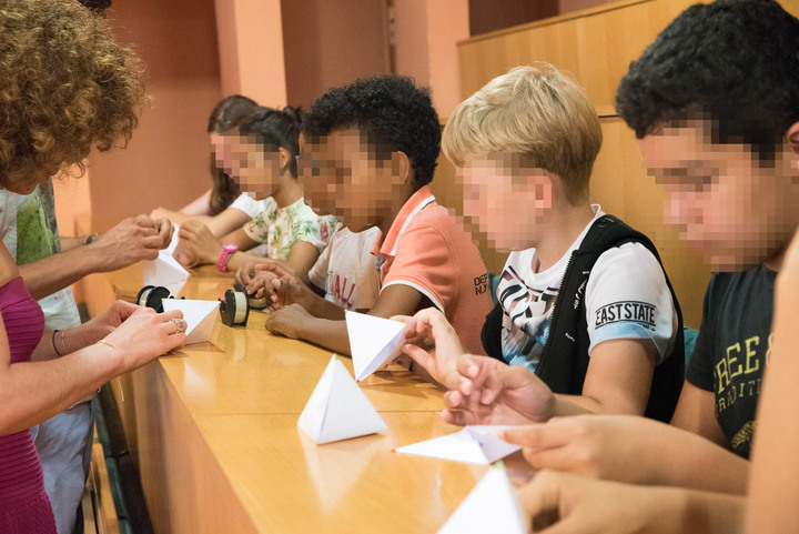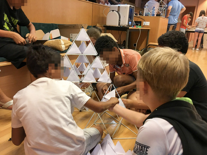 Pour leur dernier jour de classe, les élèves de CM2-B de l’école Nikaïa sont venus fabriquer des solides de Platon et un tétraèdre de Sierpinsky géants au LJAD.