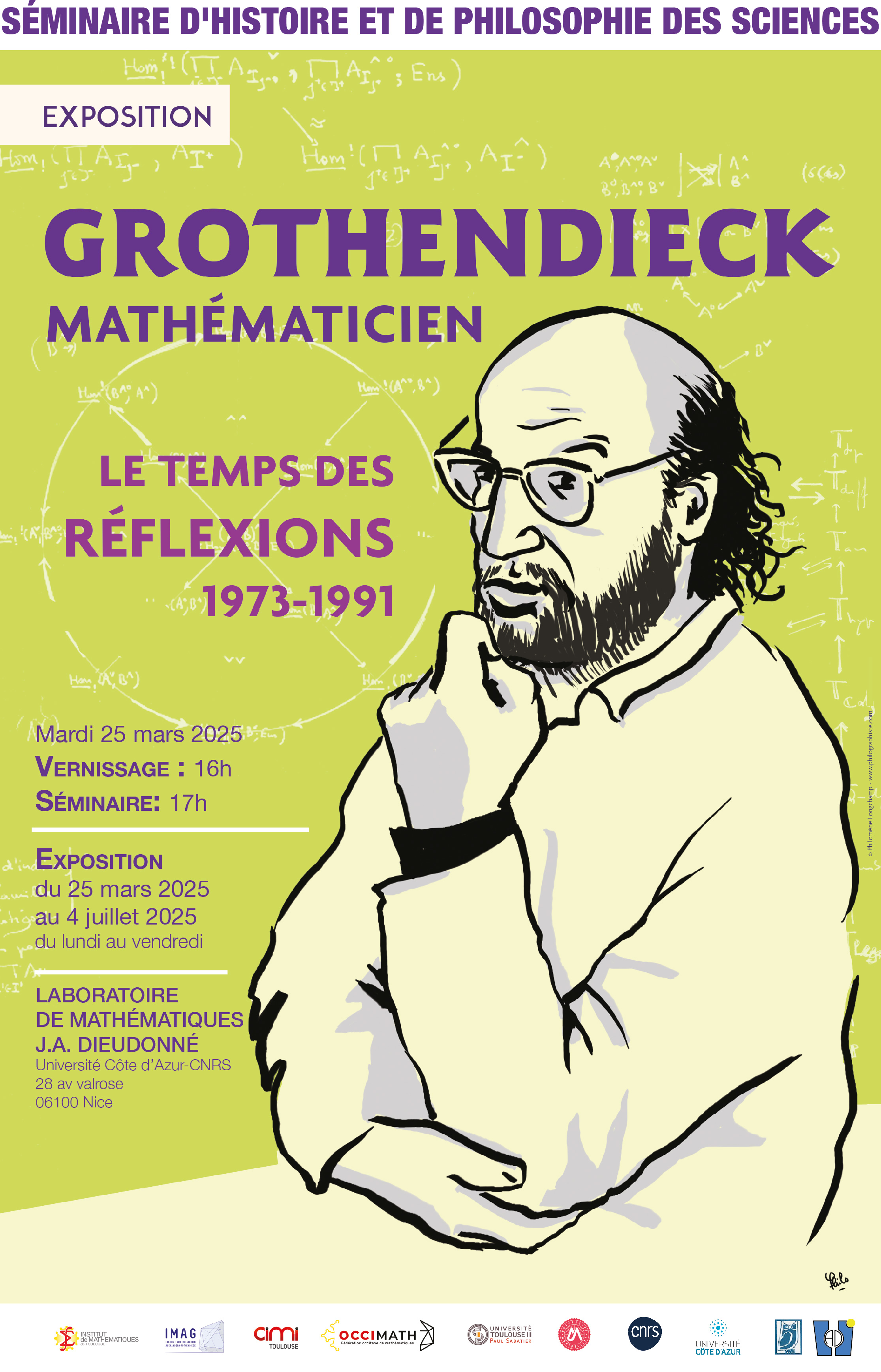 Dans le cadre du séminaire « Histoire et philosophie des sciences », le LJAD accueillera pour une mois l’exposition « Grothendieck Mathématicien - Le temps des réflexions 1973-1991 » conçue par nos collègues Sébastien Maronne et Bertrand Toën.