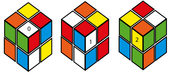 Nous allons nous intéresser au Rubik’s Cube 2x2x2, en commençant par se demander : combien y’a t-il de mélanges possiblesavec deux cousins du rubik’s cube.