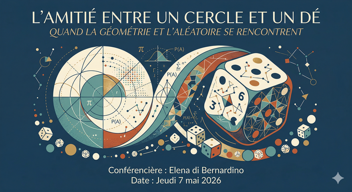 - 14h00 : Conférence « L’amitié entre un cercle et un dé : quand la géométrie et l’aléatoire se rencontrent ».