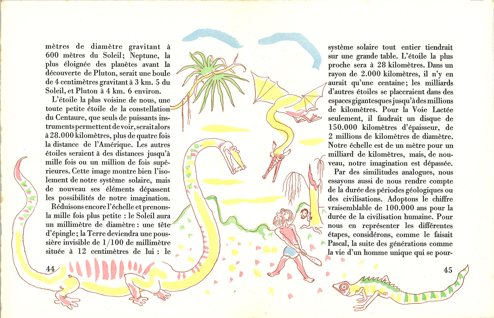 Vingt siècles ont passé depuis l’affirmation d’Archimède ; l’humanité s’est familiarisée avec les grands nombres et jongle aussi bien avec leurs inverses qui sont les nombres très petits. L’étude de l’Univers et celle de l’Atome ont introduit des expressions numériques qui ont cessé de nous étonner. Pour exprimer de très grands nombres, on a introduit P « année de lumière » qui est à la fois une unité de temps et une unité de longueur comme l’expression « jour de marche ». Elle représente le chemin parcouru par la lumière se propageant en ligne droite pendant un an, à la vitesse de trois cent mille kilomètres par seconde, soit dix mille milliards ou une dizaine de trillions de kilomètres. Bien que de tels nombres ne correspondent dans notre esprit à aucune image concrète, nous lisons couramment des phrases comme la suivante : notre Univers est formé des trente milliards d’étoiles de la voie lactée, couronne dont 1 épaisseur est de vingt mille ans de lumière et le diamètre, de trois cent mille ans de lumière. Au delà de cet Univers, s’en trouvent d’autres formant les nébuleuses spirales qui en sont éloignées à des distances de plusieurs millions et même de plusieurs centaines de millions d’années de lumière.