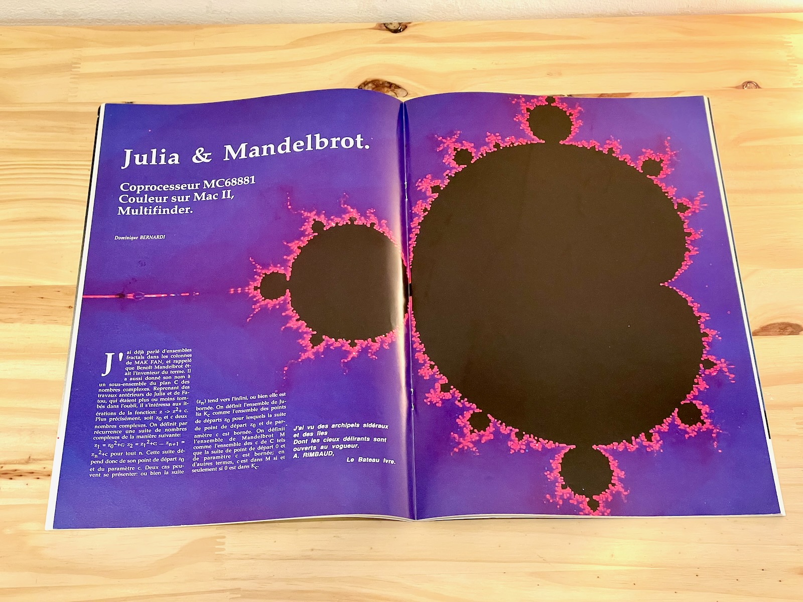 Le Mac n’est pas vraiment une machine de « bidouilleurs » et pourtant une des premières revues française qui lui est consacrée, propose de découvrir les fractales et les ensembles de Mandelbrot avec des parties de programmation en assembleur 68881 !!