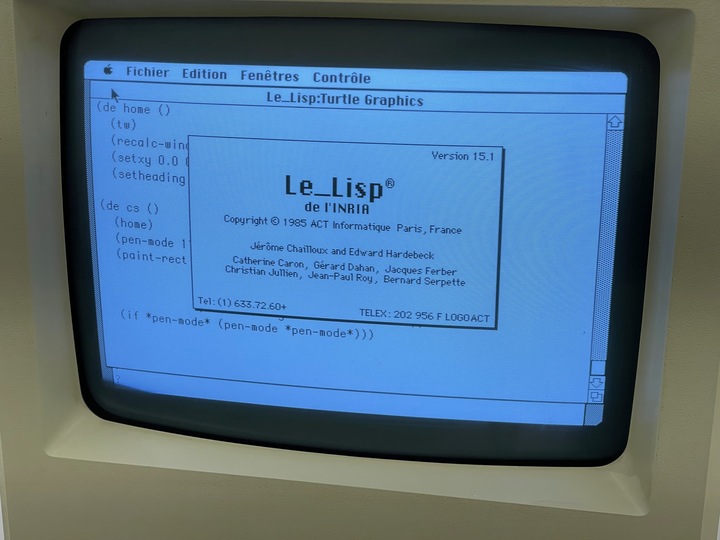 Une version de Le_Lisp (Lisp de l’INRIA) sur Mac avec laquelle JM Hullot a travaillé était en démonstration.