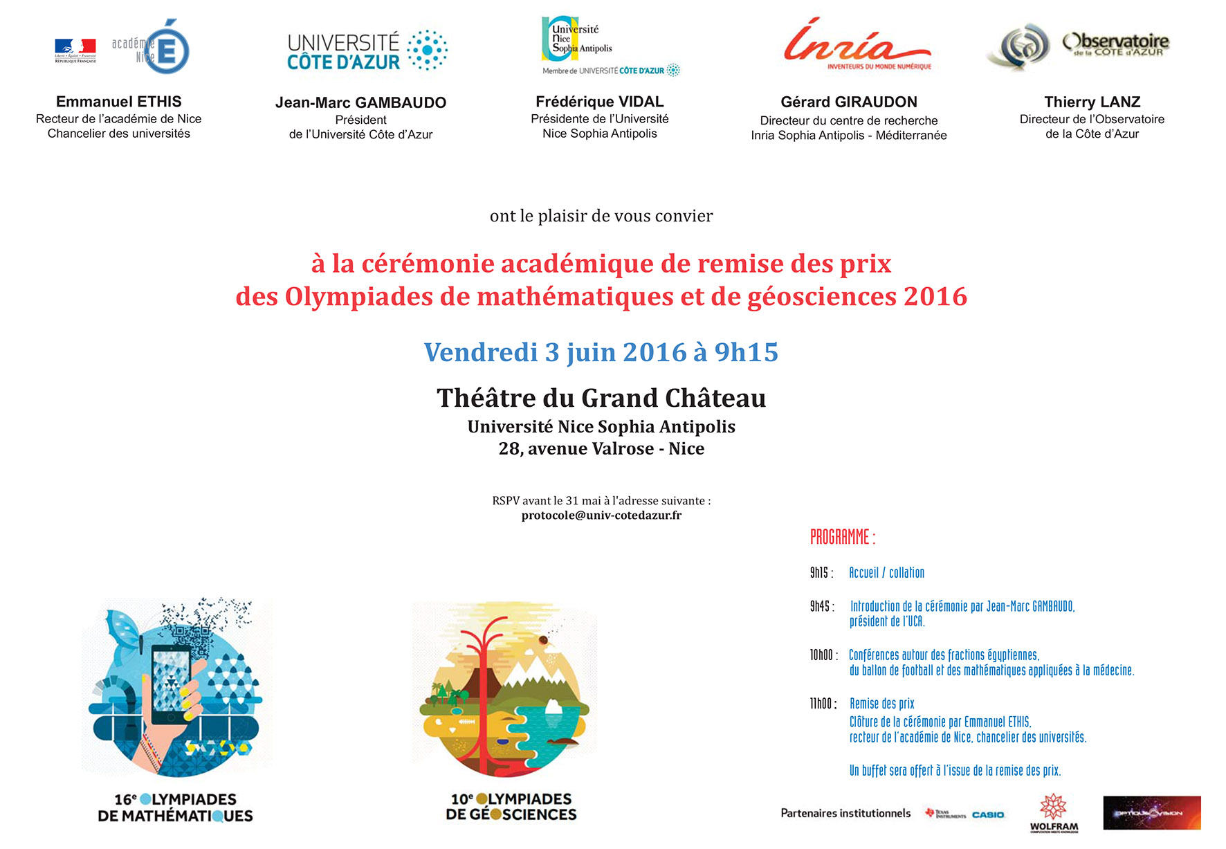 Olympiades Mathématiques - Cérémonie académique de remise des prix