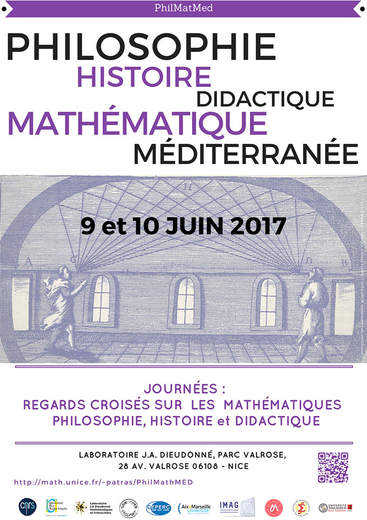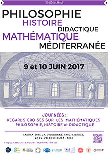 Le réseau PhilMathMED réunit des chercheurs des Universités de Marseille, Montpellier, Nice et Toulouse, autour de la didactique, l’histoire et la philosophie des mathématiques. Il est soutenu par le GDR PhilMath (Philosophie des mathématiques).