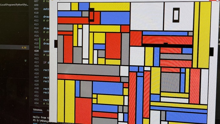 A travers une partie d’un Pong « un peu » modifié, nous vous proposons de créer votre oeuvre à la manière de l’artiste Mondrian, en respectant une règle : que deux rectangles générées lors de la partie et qui se touchent, n’aient la même couleur.